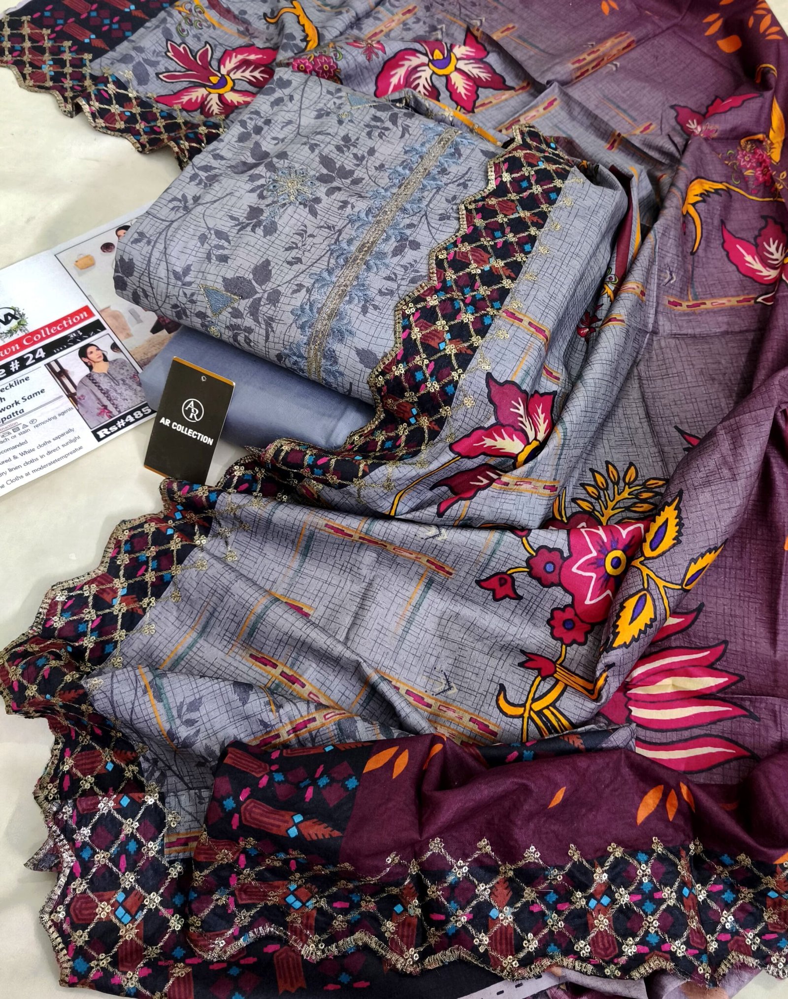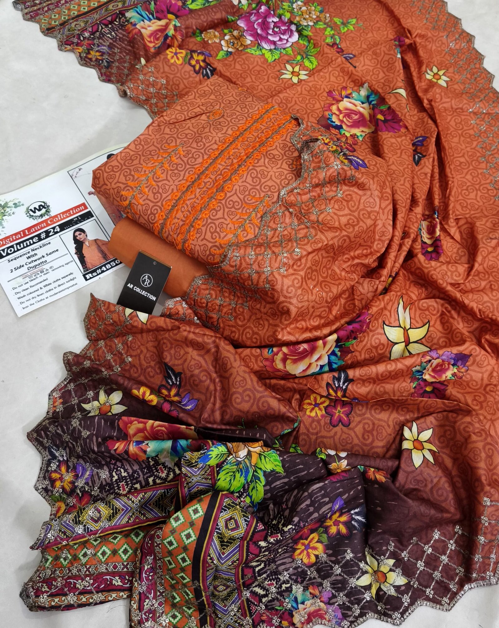 2 SIDE CUTWORK DUPATTA FULL EMBROIDERY DIGITAL PRINTED 3 PIECE LAWN COLLECTION 2K25 Volume # 24: