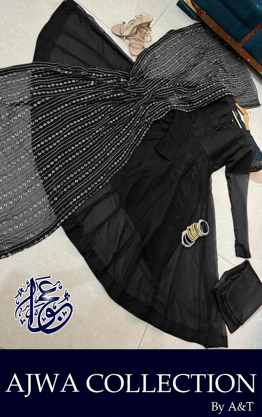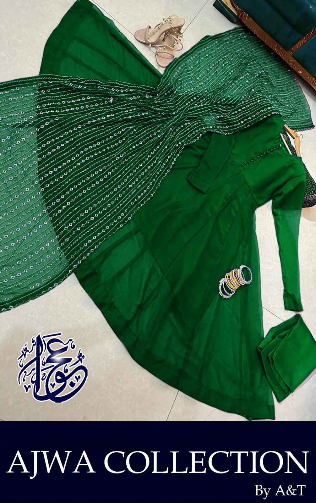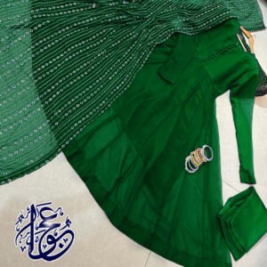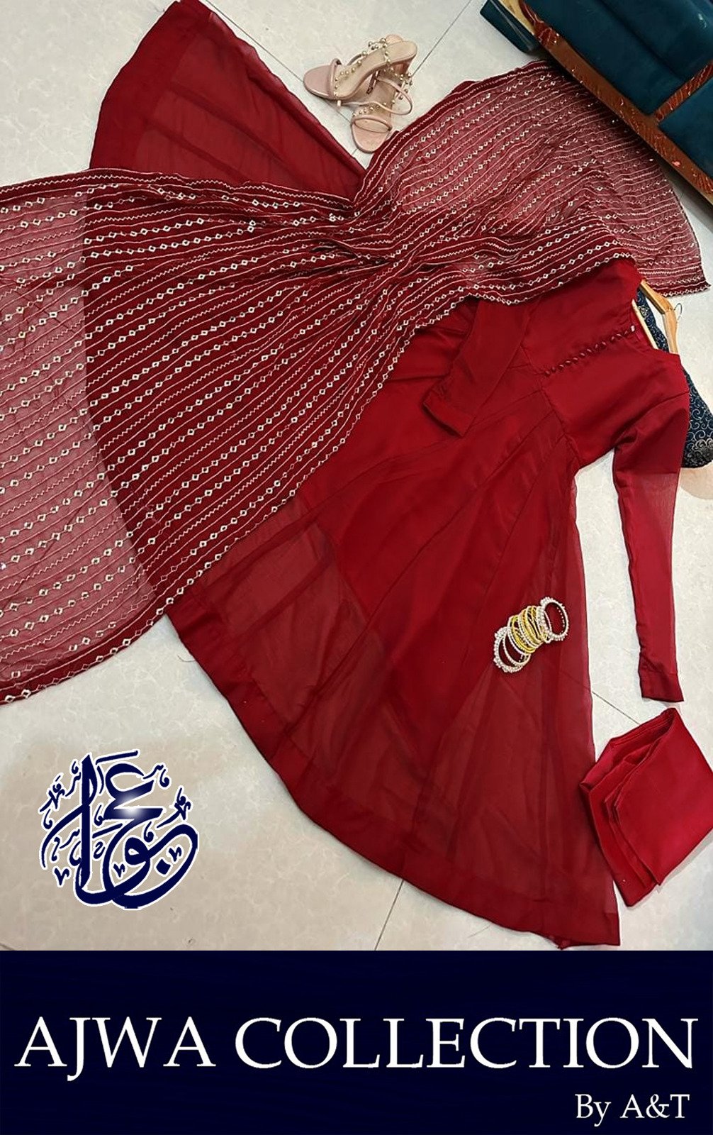 Allover Fully Embroidered Dupatta, With Handmade Button Kalli Work Long Flare Maxi 3Pcs: