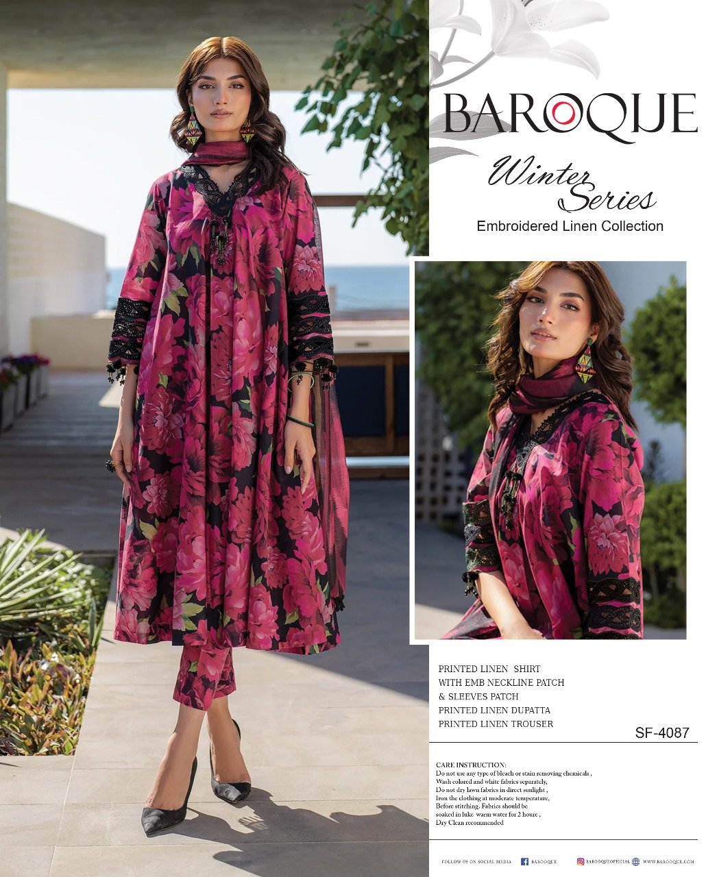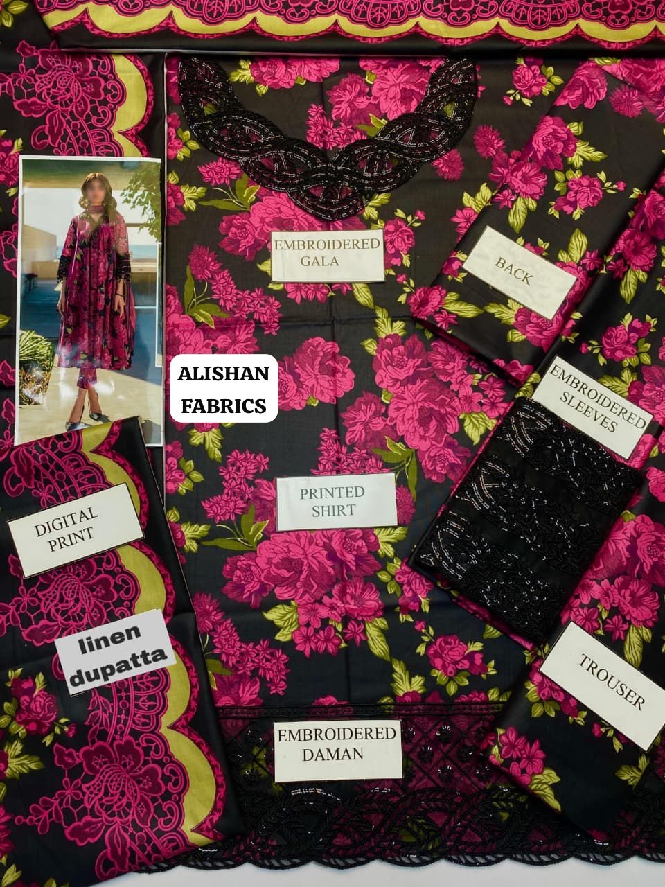 BAROQUE Digital Printed Embroidered Linen Collection – Black Floral: