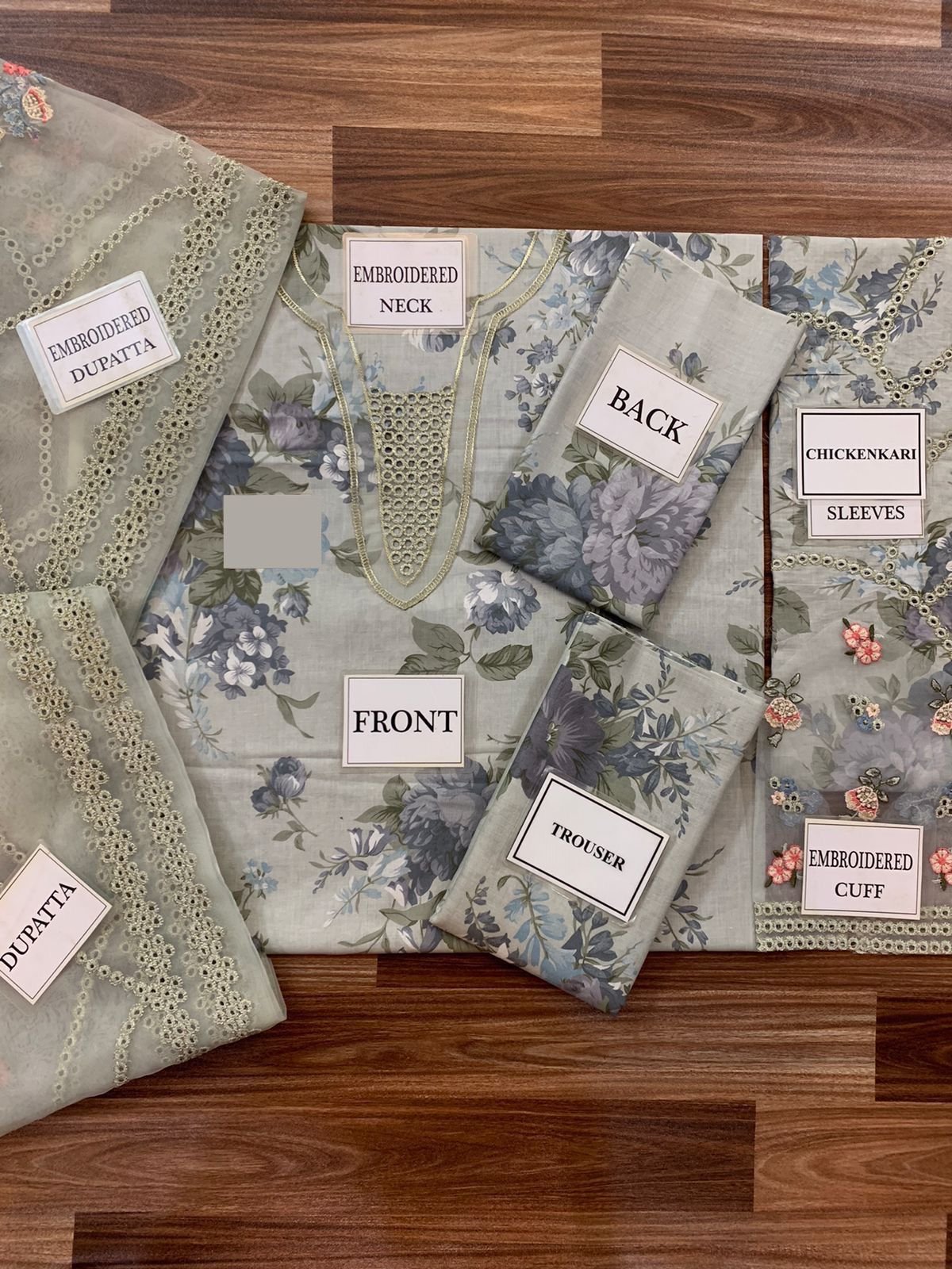 Front: Premium Printed Pure Lawn, featuring an exquisitely detailed Neckline Patch