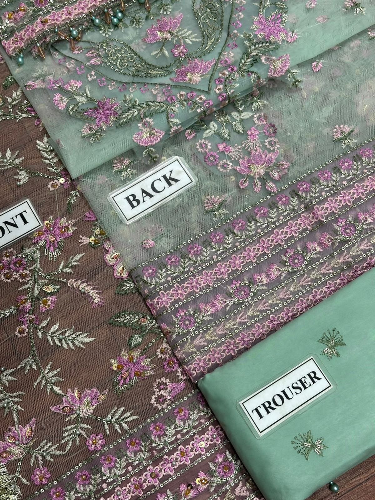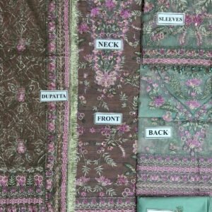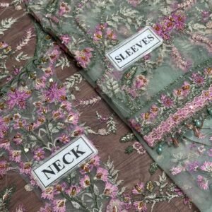 Embroidered zari net front, back & sleeves border