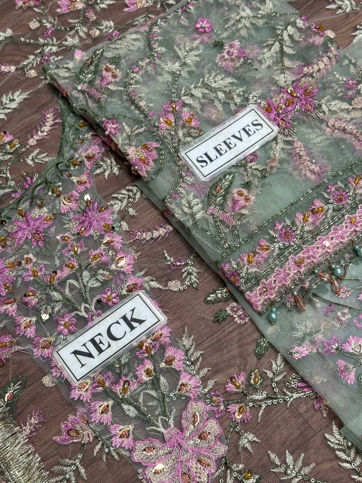 Embroidered zari net sleeves