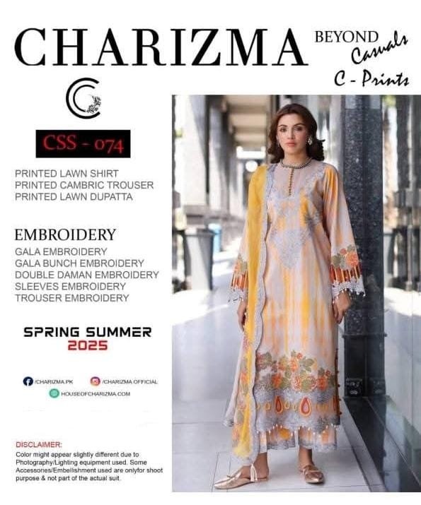 CHARIZMA | Printed Embroidered Summer Lawn Collection | CSS – 074