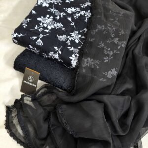 Chiffon Black Dupatta With 4 Side GPO Lace Work