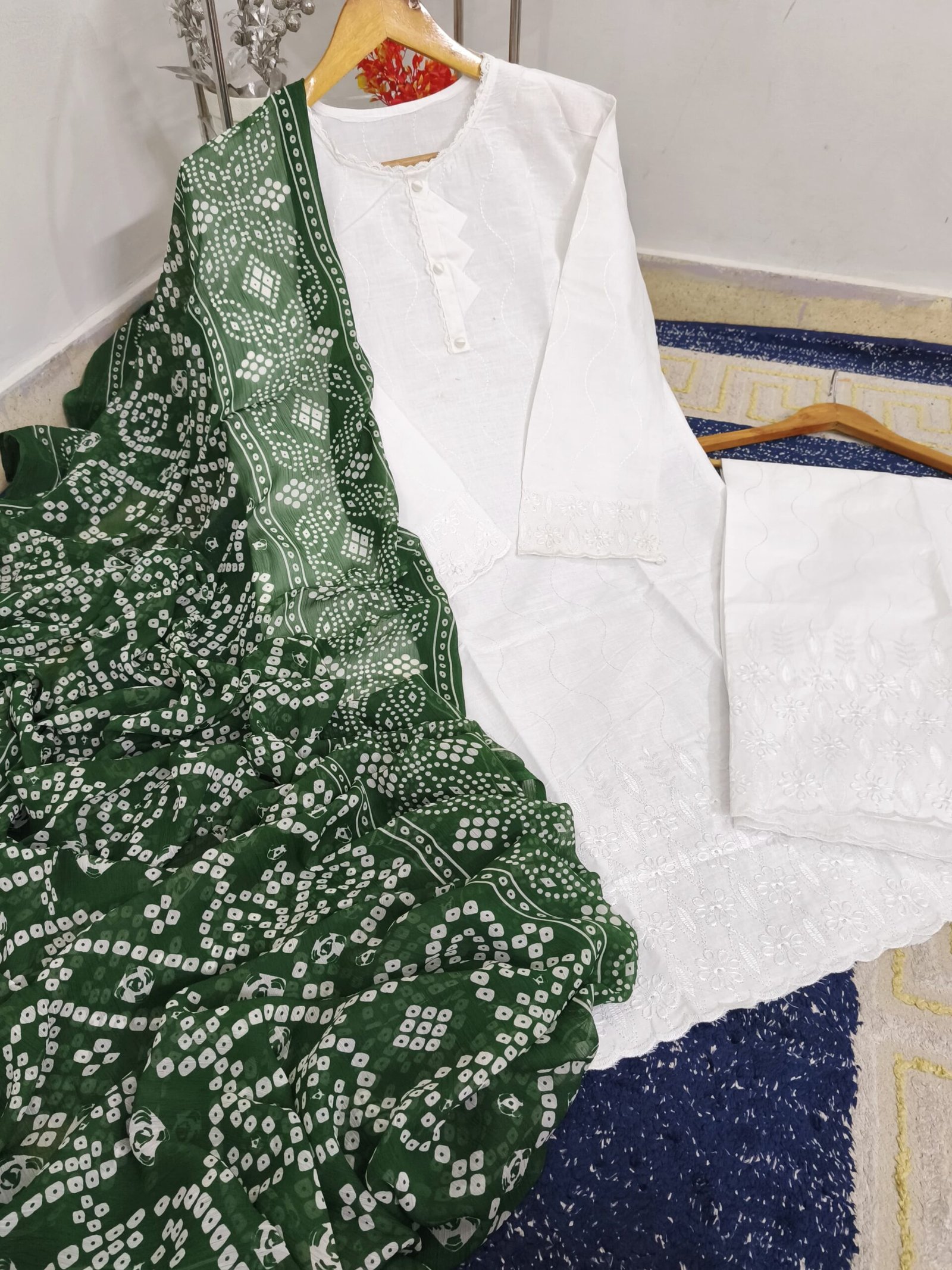 EMBROIDERY CHICKEN KARI 2 PC WITH GREEN CHUNDRI DUPPATA