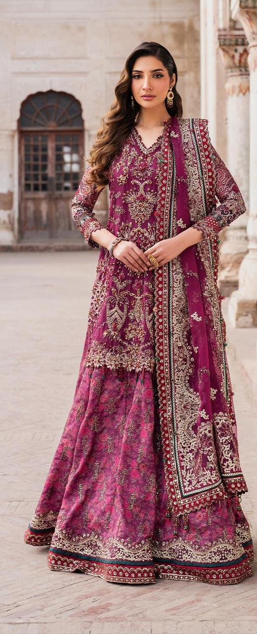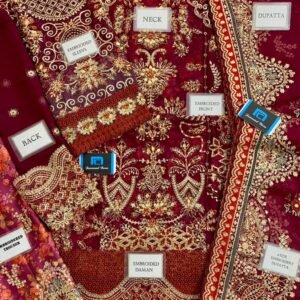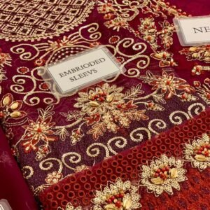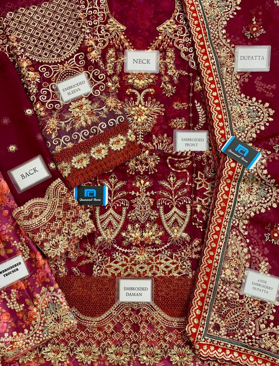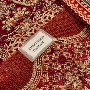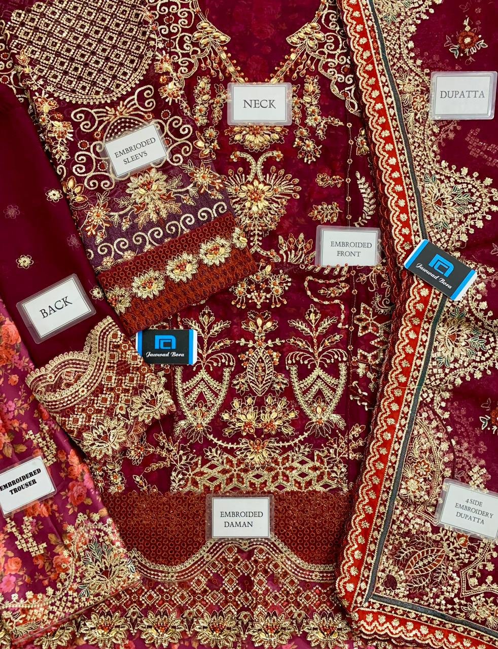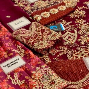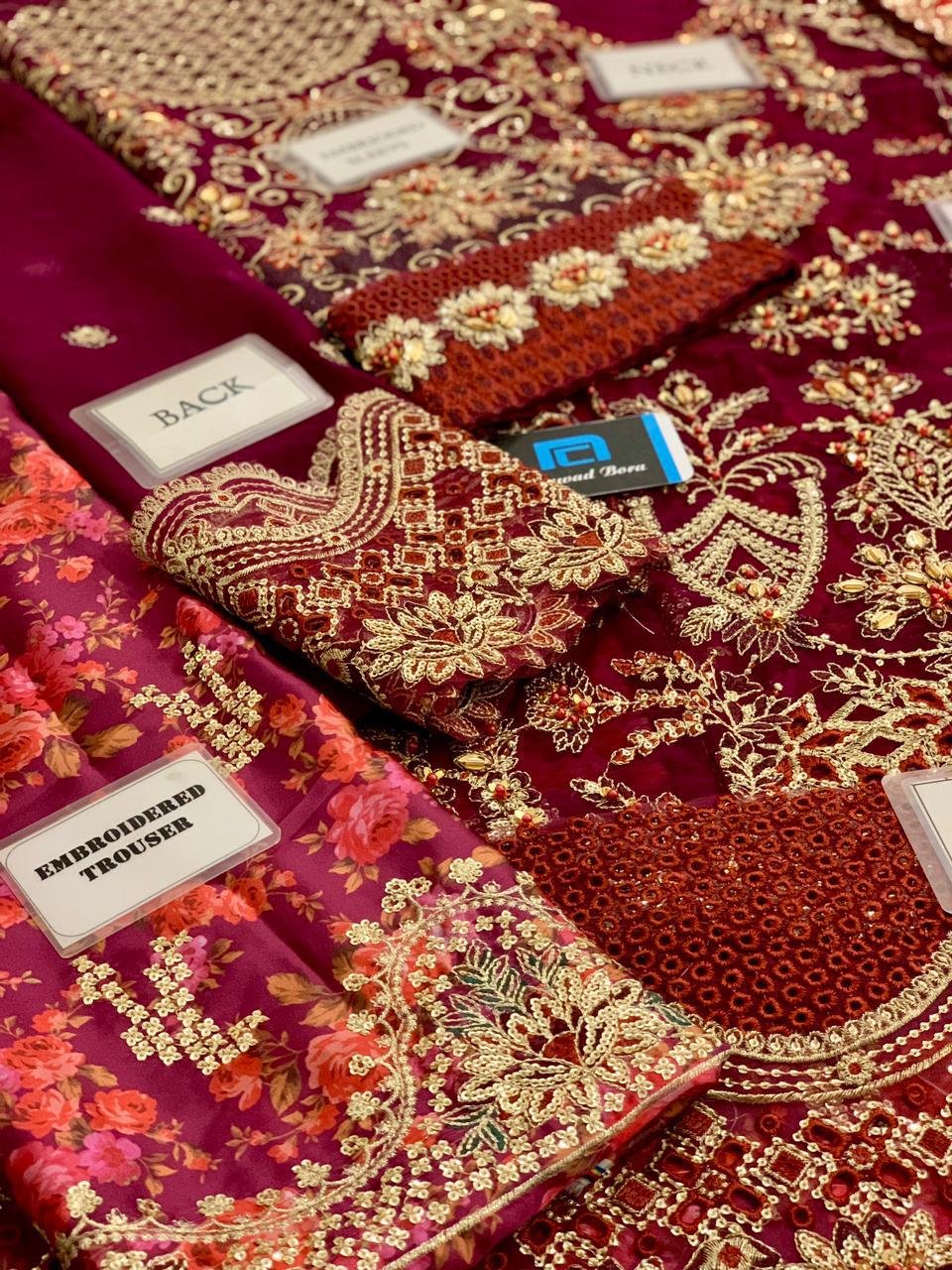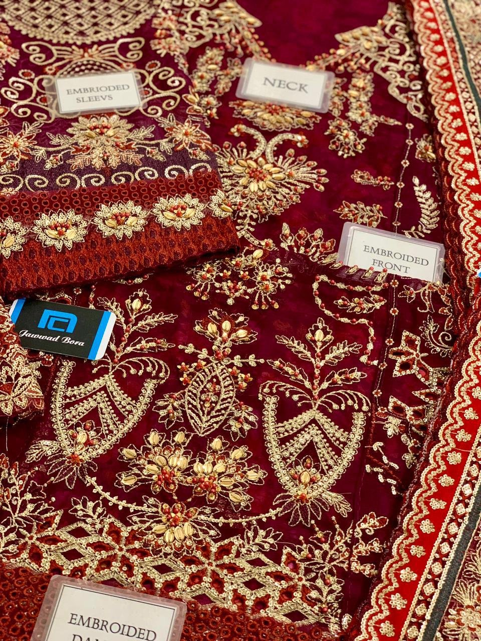 Chiffon Fully Embroidered Spengle Work Back with Heavy Embroidered Spengle Work Back Daman Boarder