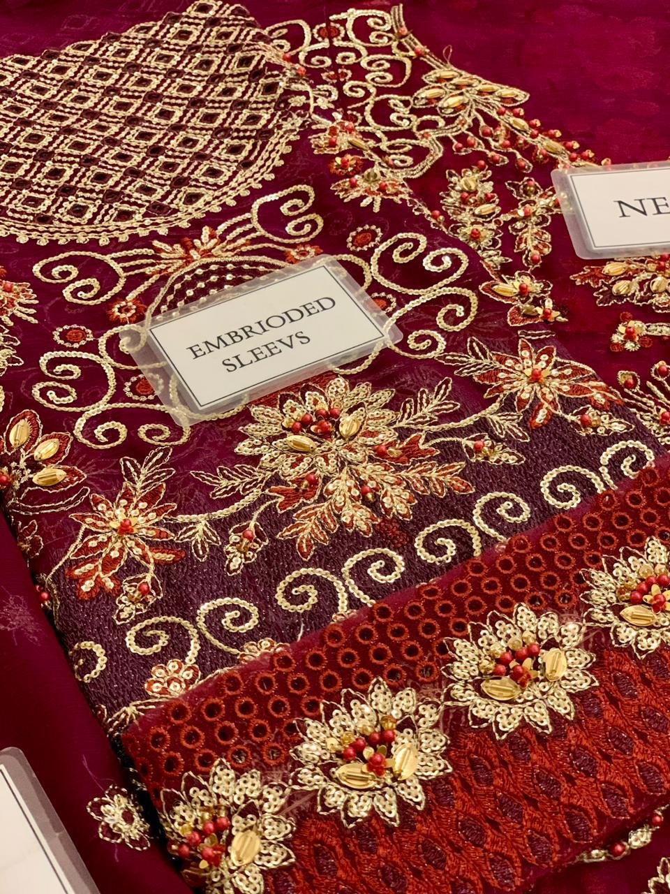Chiffon Fully Heavy Alternet Embroidered Spengle Work Sleeves with Fully Hand Emblishment Adda Work with Heavy Embroidered Spengle Work Sleeves Boarder
