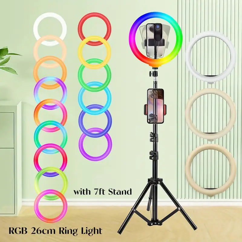 Set of Multi-use RGB Colour 26Cm Ring Light With 3 Soft Mode Options and 7ft Tripod Stand…