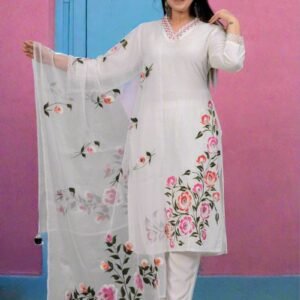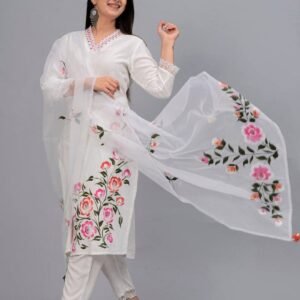 New Arrival Stitched 3 Piece Neck + Border Flower’s Embroidery Suit