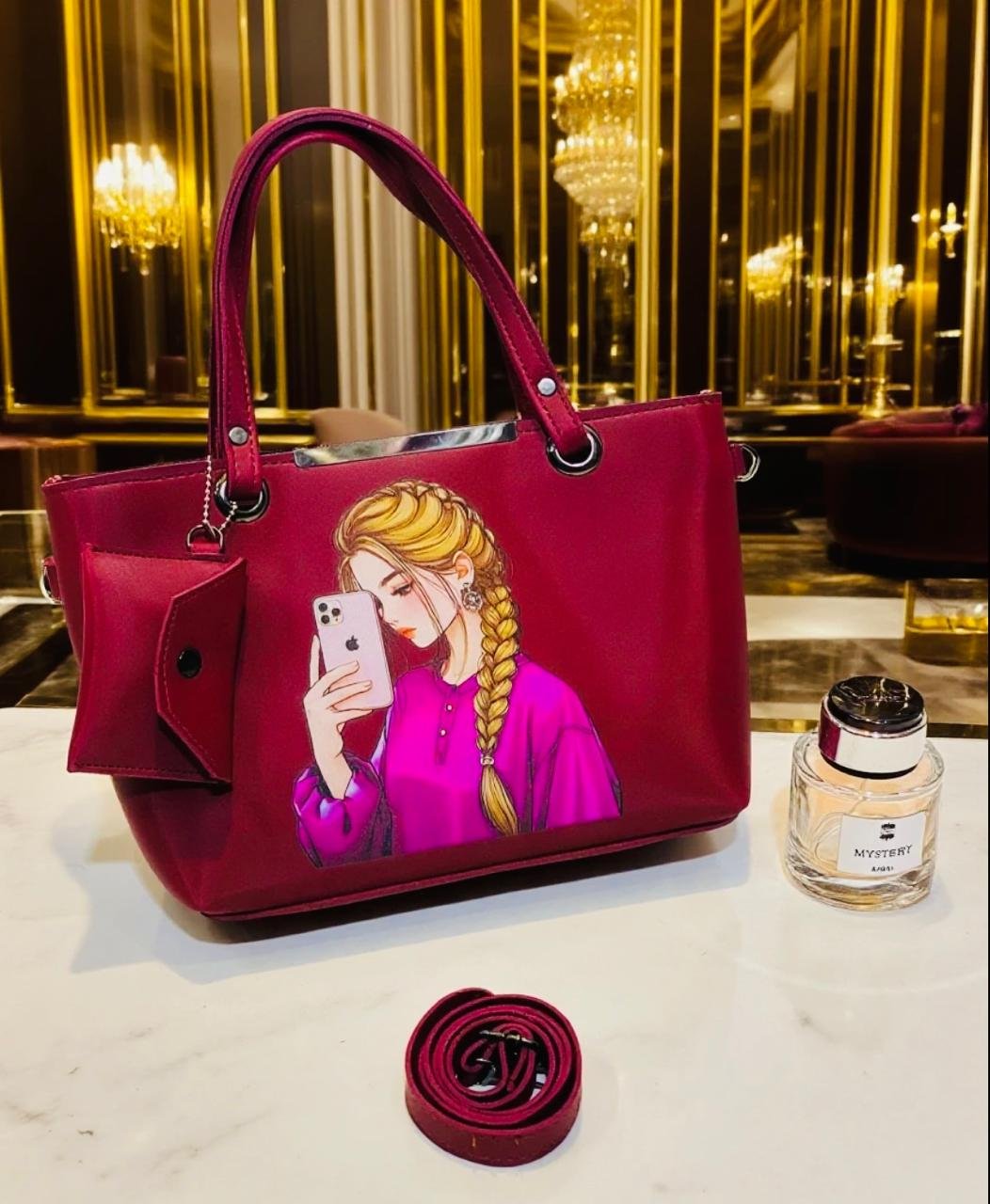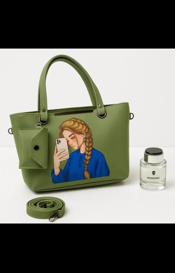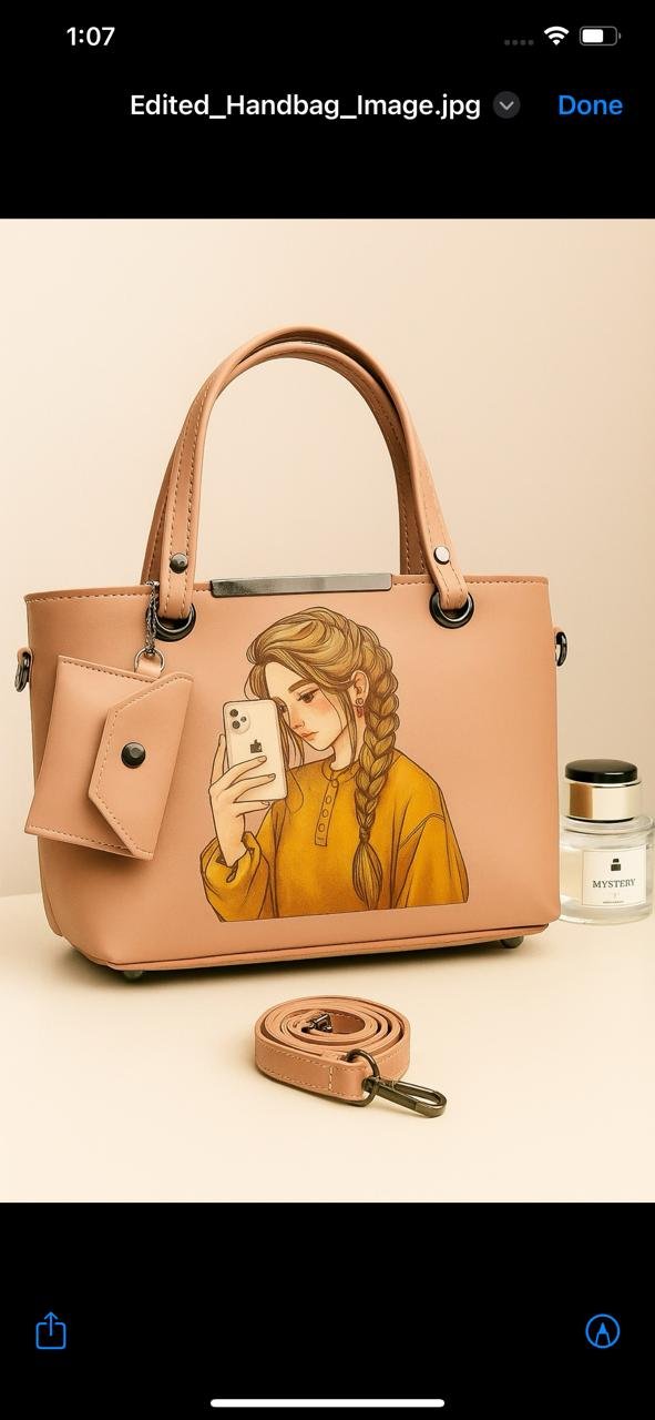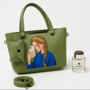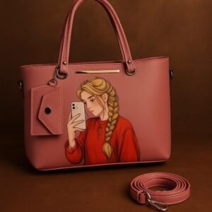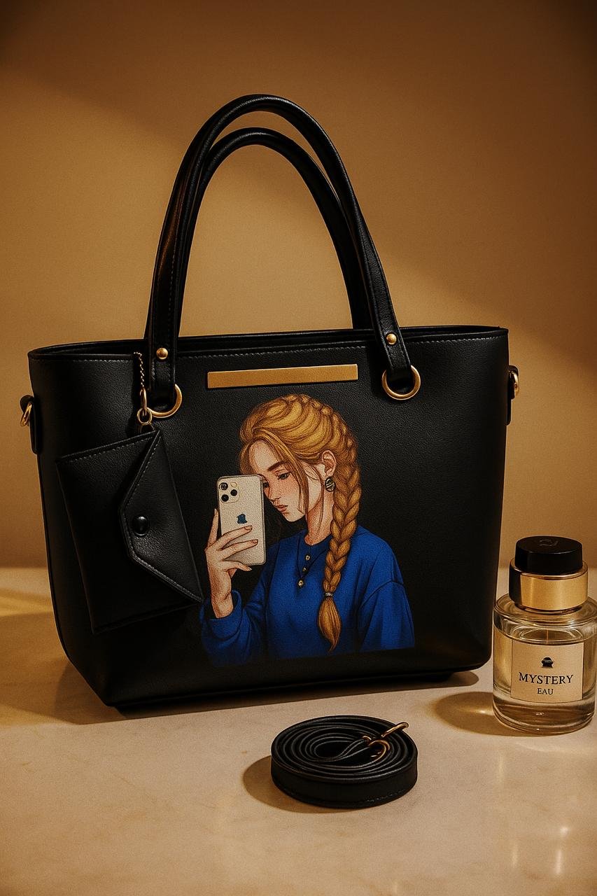 This stylish Tote bag is the perfect blend of modern art and utility. Featuring a unique selfie girl illustration on premium brown leather texture, this bag is designed for bold women who love expressing their personality through fashion.