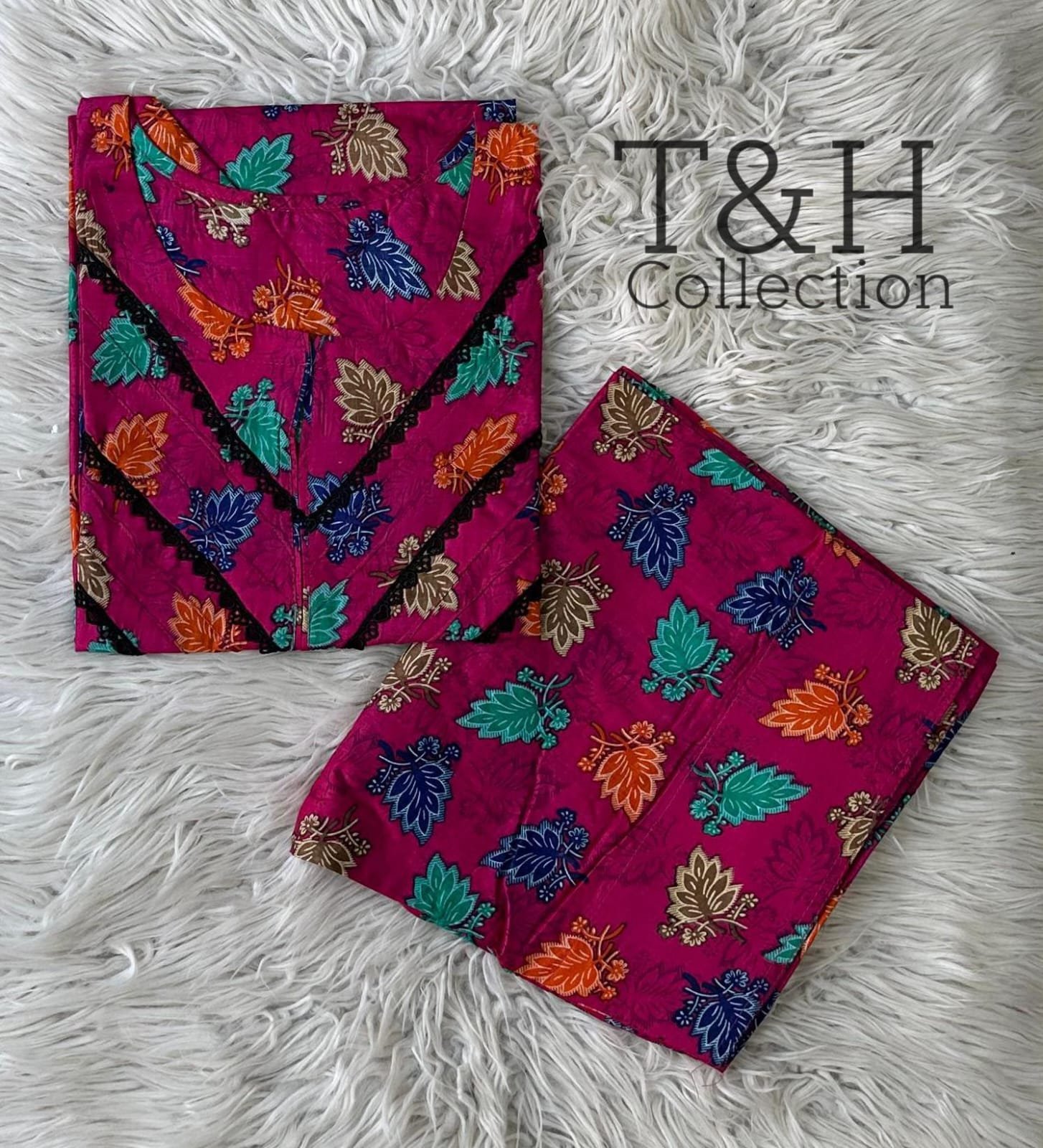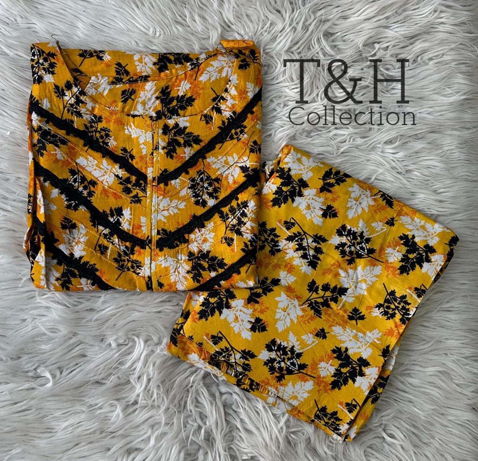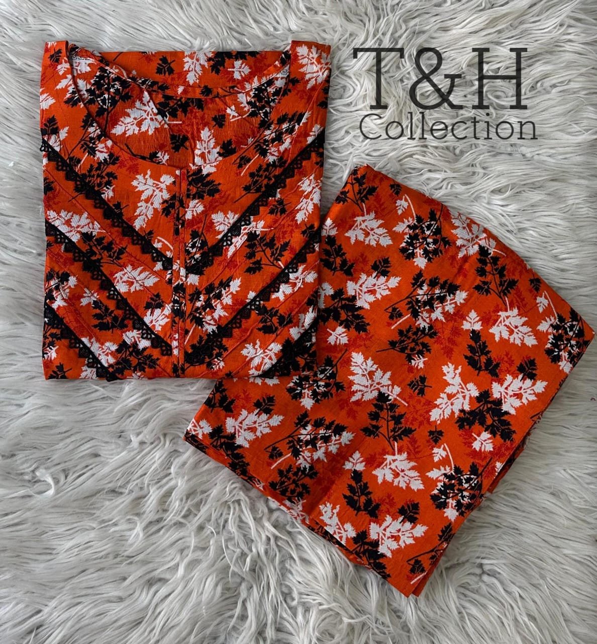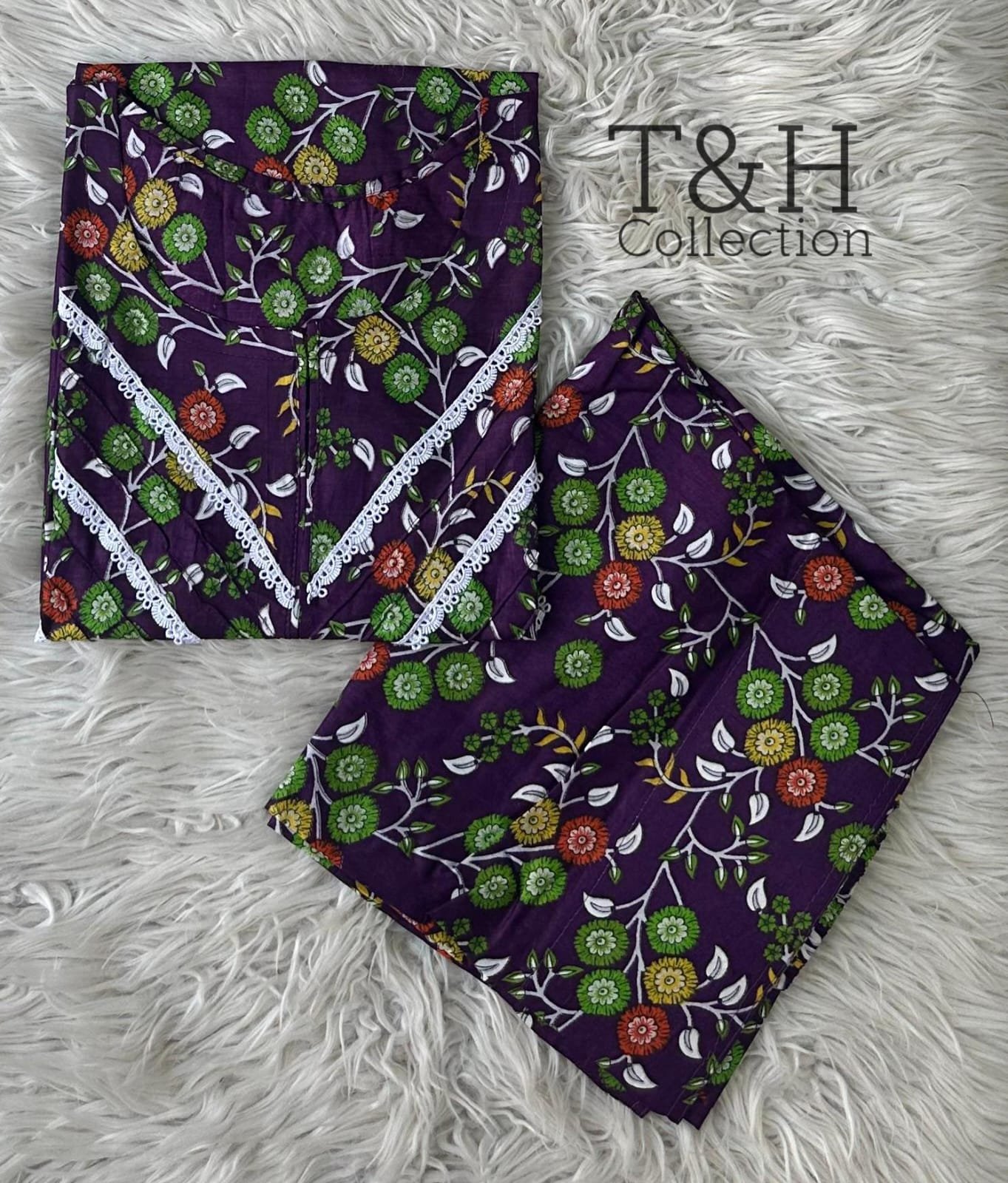 T&H COLLECTION PRINTED LAWN 2 PIECE STITCHED SUIT WITH FARSHI SHALWAR