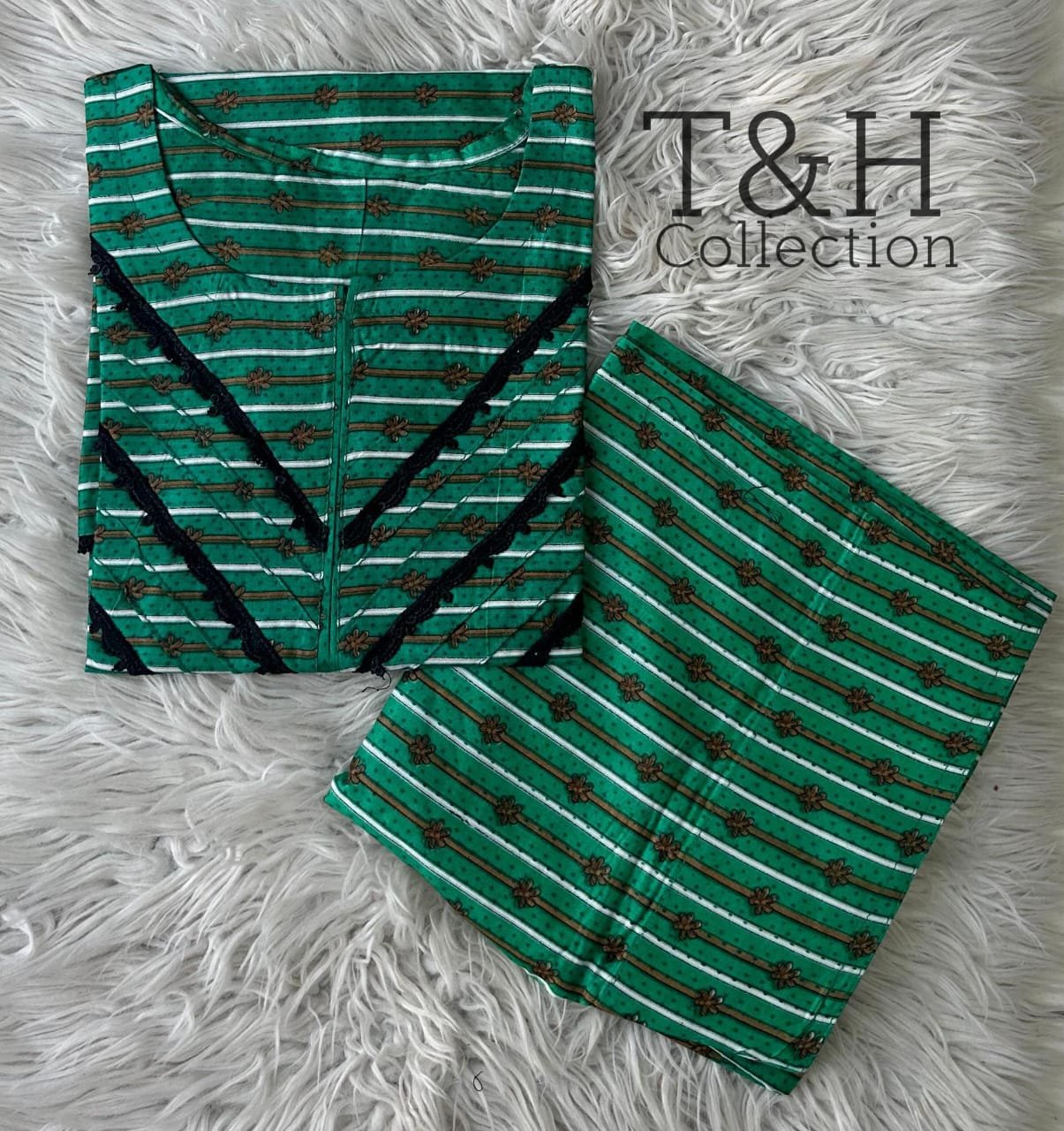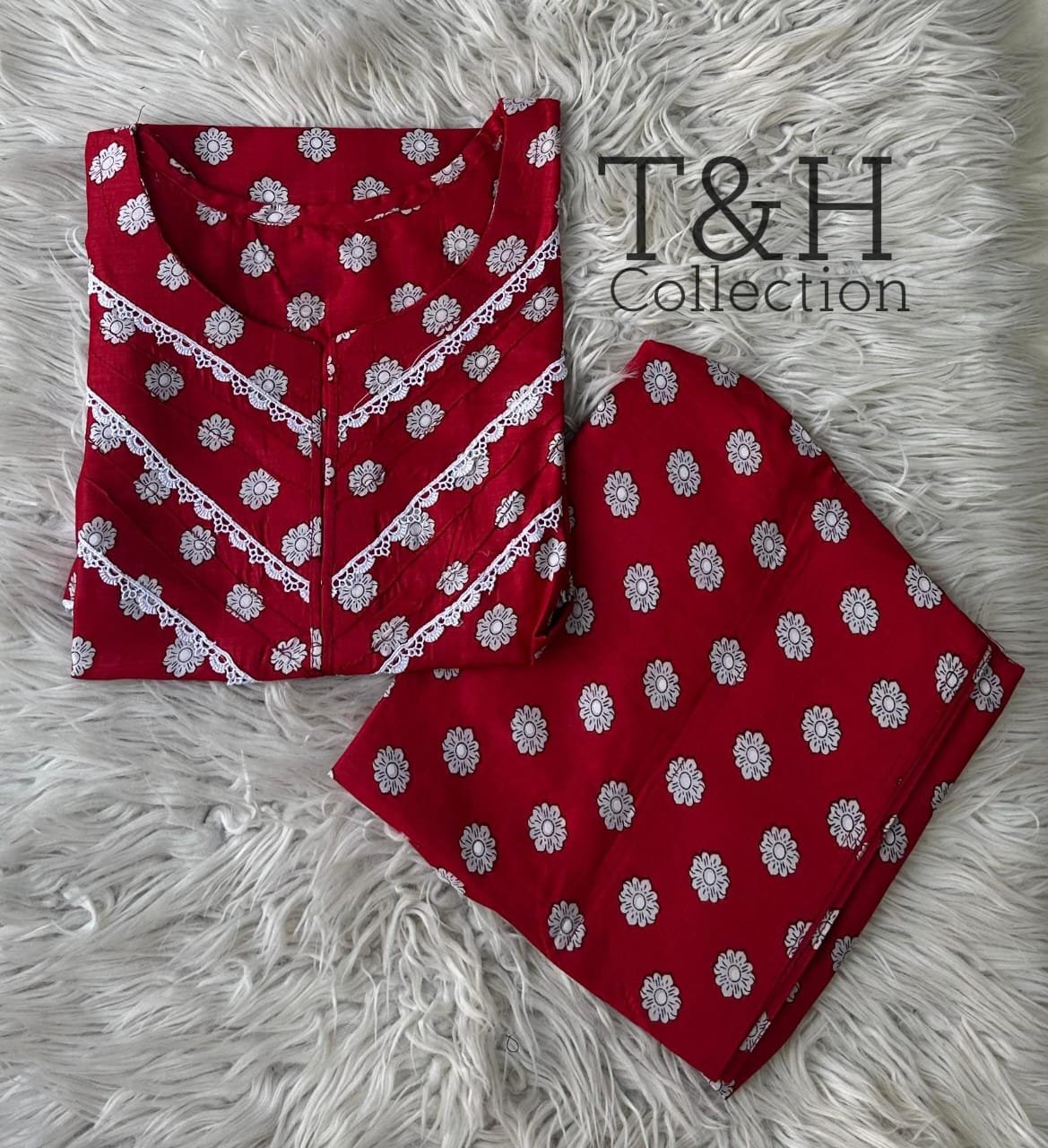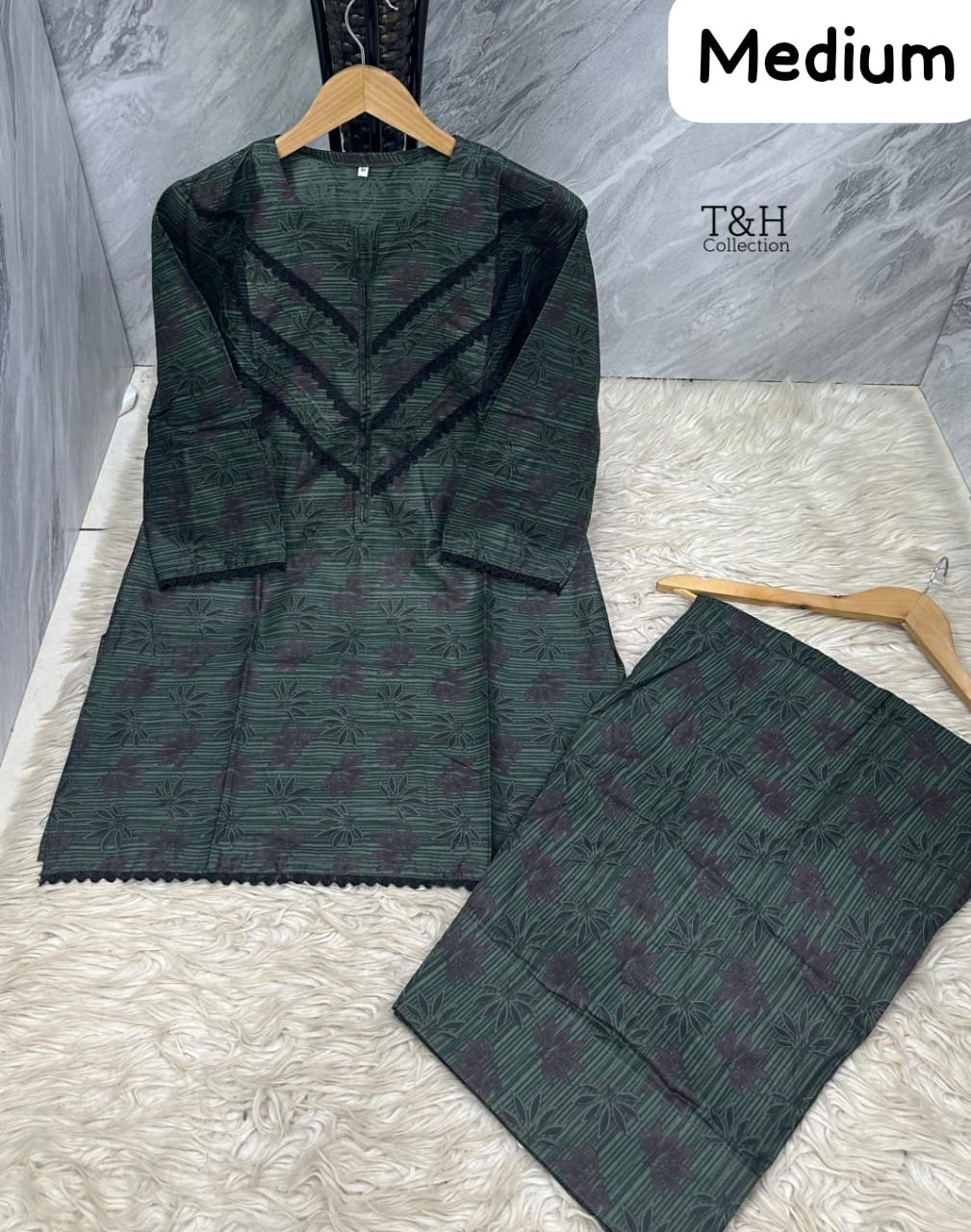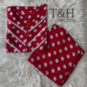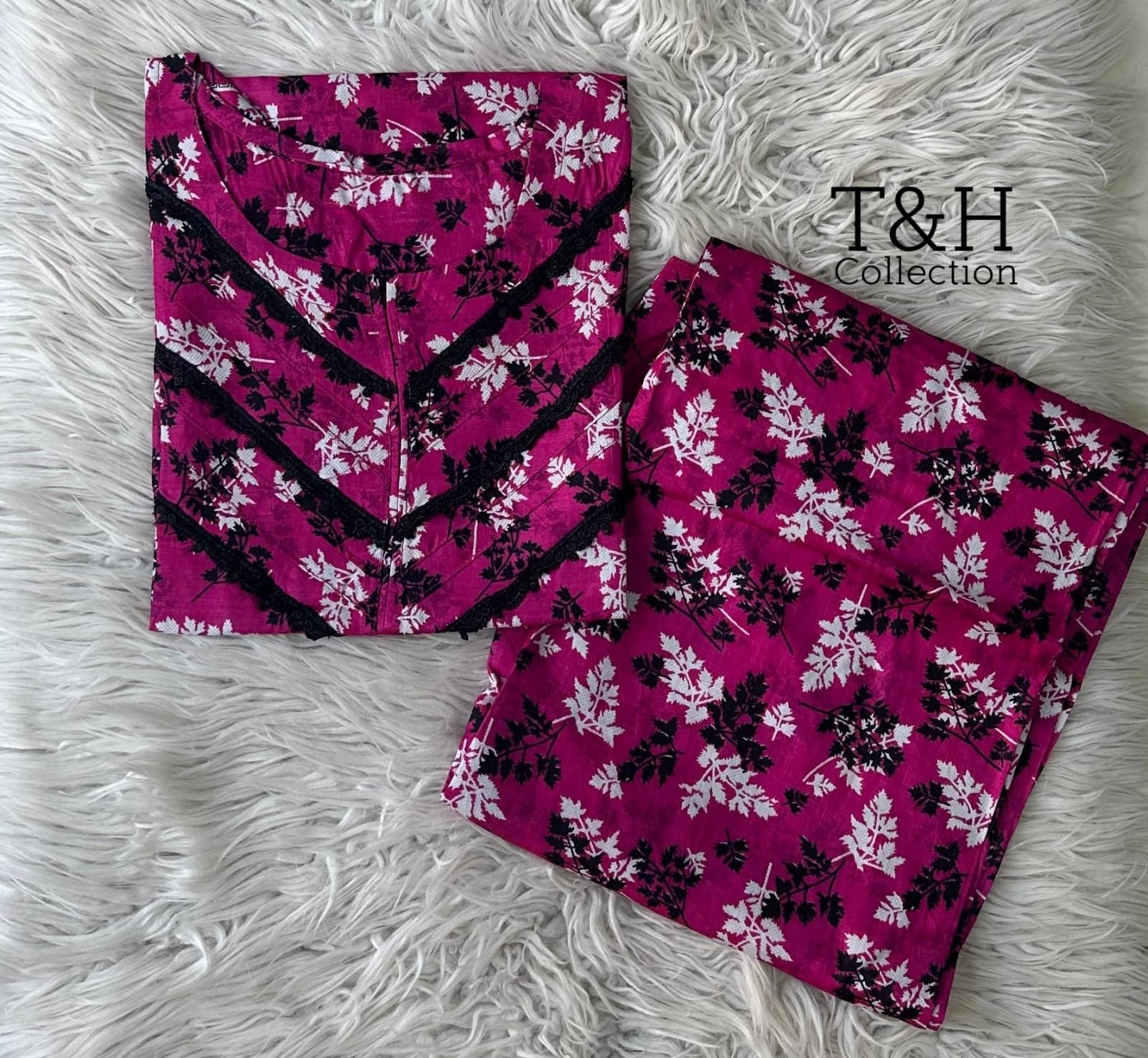 T&H COLLECTION PRINTED LAWN 2 PIECE STITCHED SUIT WITH FARSHI SHALWAR