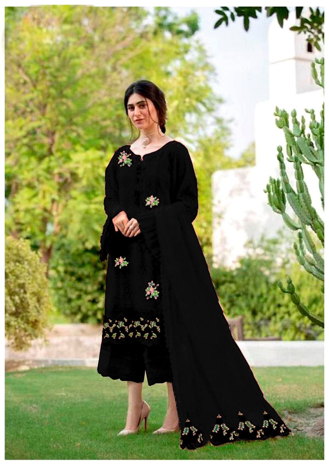 - Dupatta: Chiffon with Embroidery