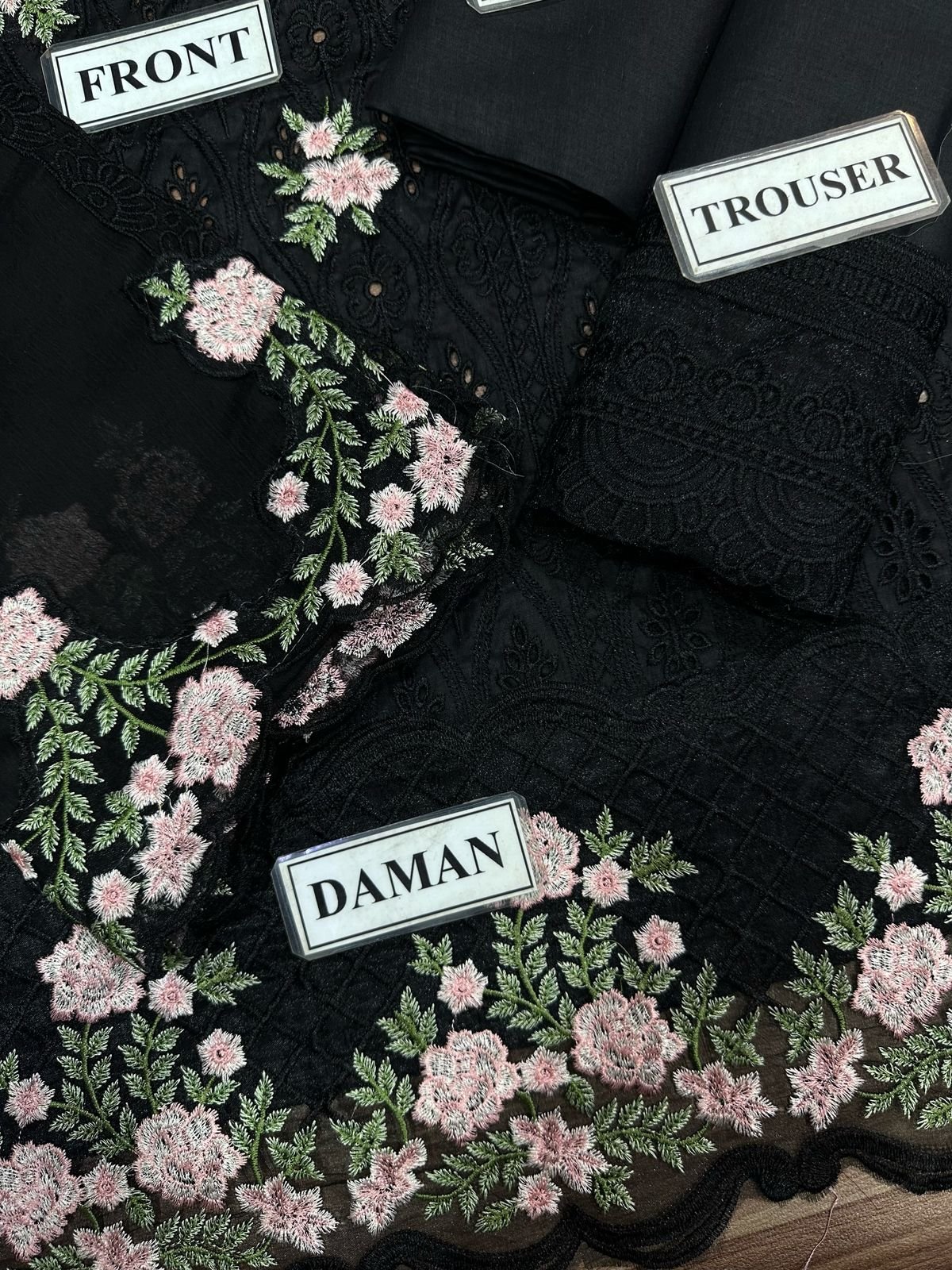 - Front Daman: Embroidered