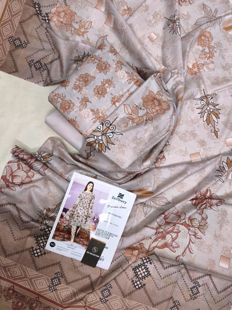 ZELLBURY DIGITAL PRINTED PREMIUM 3 PIECE LAWN COLLECTION: