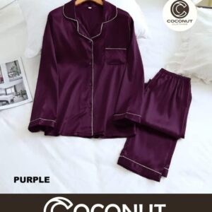 COCONUT COLLECTION | Piping Work on Shirt and Trouser Night Suit 3PCs (With Scrunchie)
